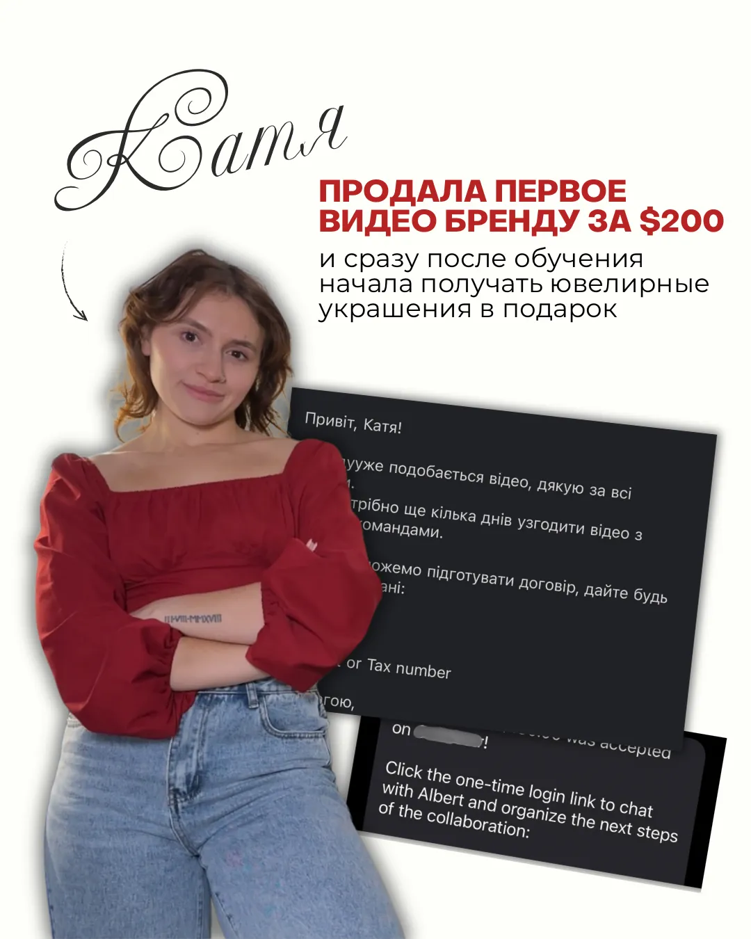 начнете развивать личный бренд криэйтора, еще подробнее разберете процесс коллабораций от А до Я, чтобы избежать рисков и недоразумений с брендами, а также узнаете, как поднимать чек и строить долгосрочные отношения с клиентами.