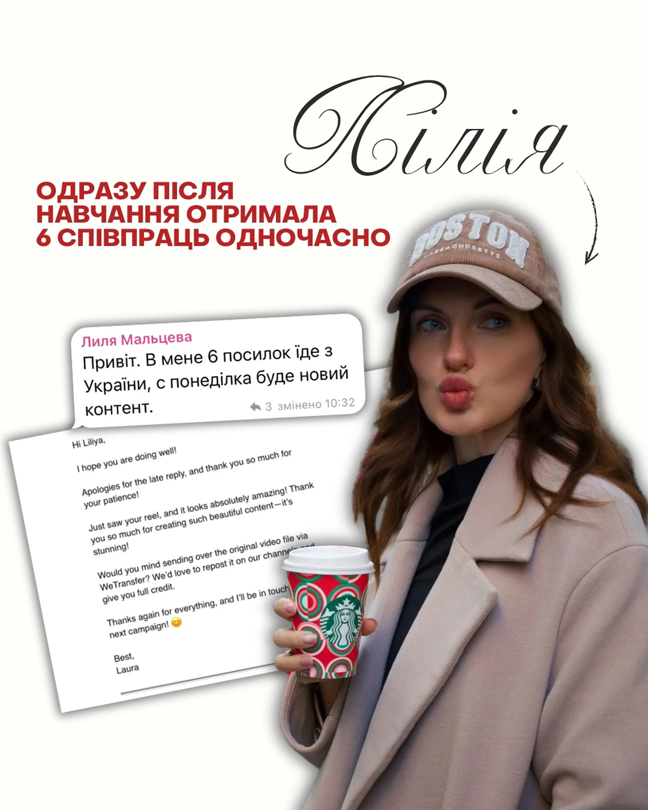 почнете розвивати особистий бренд кріейтора, ще детальніше розберете процес колаборацій від А до Я, аби уникнути ризиків та непорозумінь з брендами, а також дізнаєтесь, як піднімати чек і будувати довгострокові відносини з клієнтами